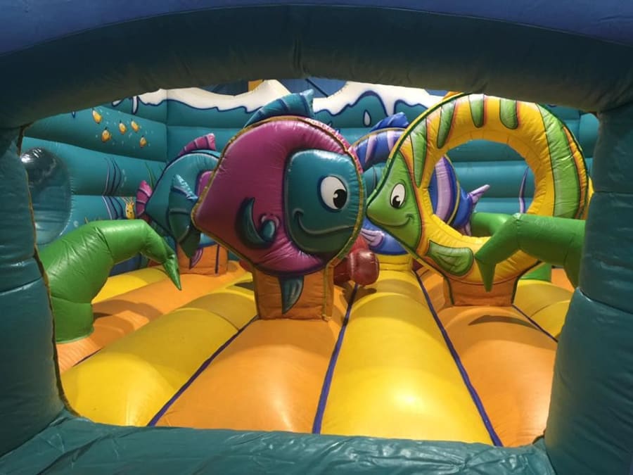 This is a fantastic large bouncy castle with different shapes inside to make playing and jumping even more fun!