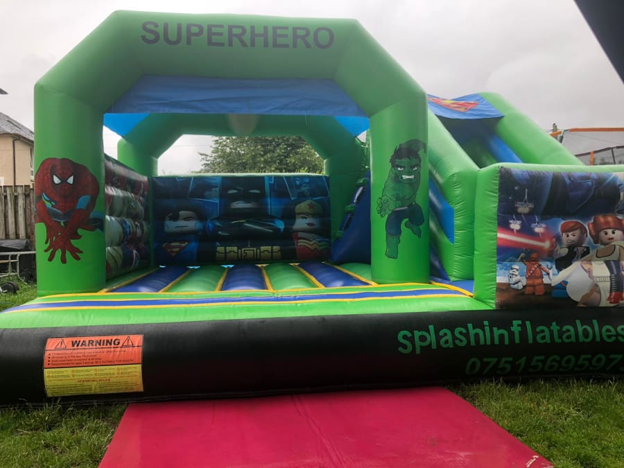 Exciting superhero bouncy castle for all those Avenger fans! This one also has some lego superheros and star wars characters on it!