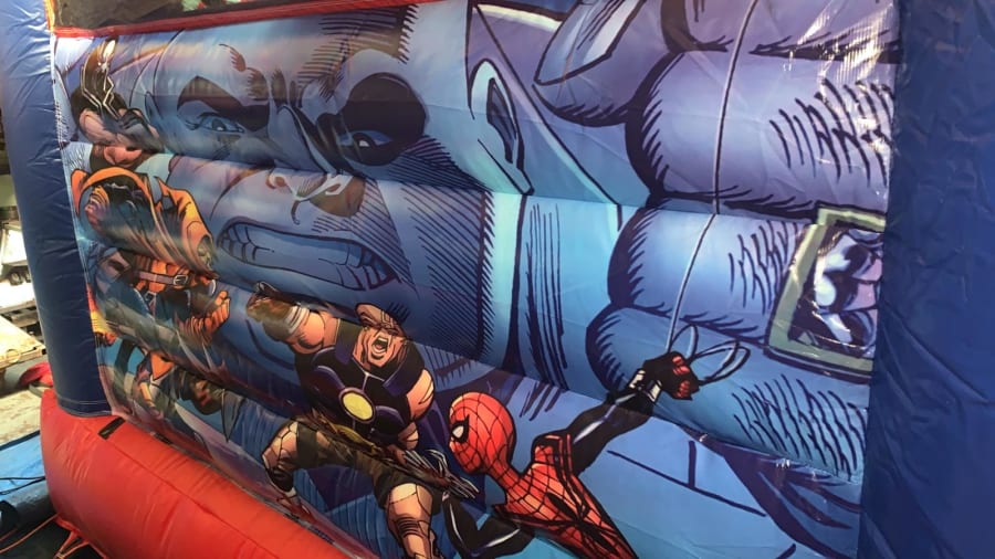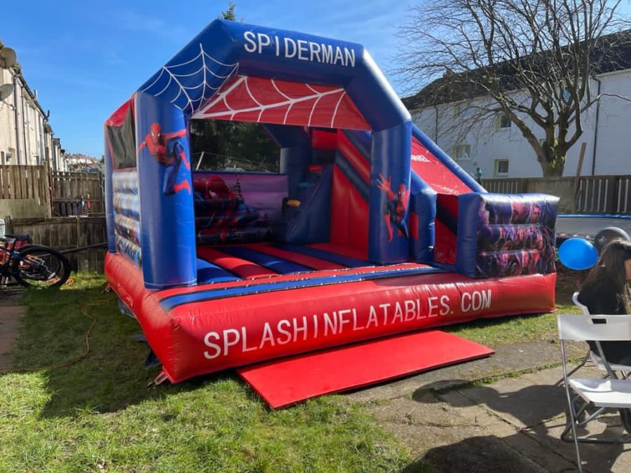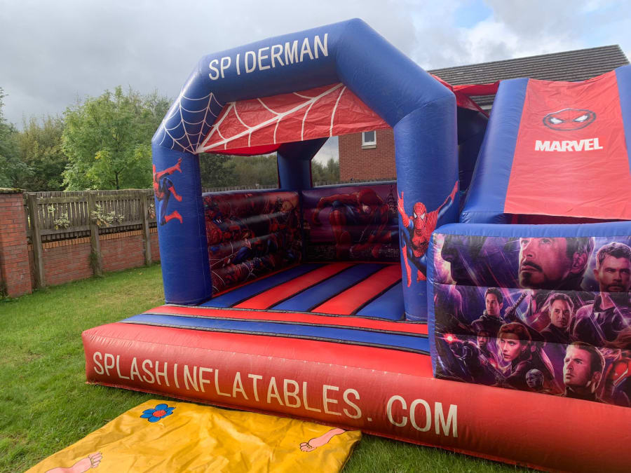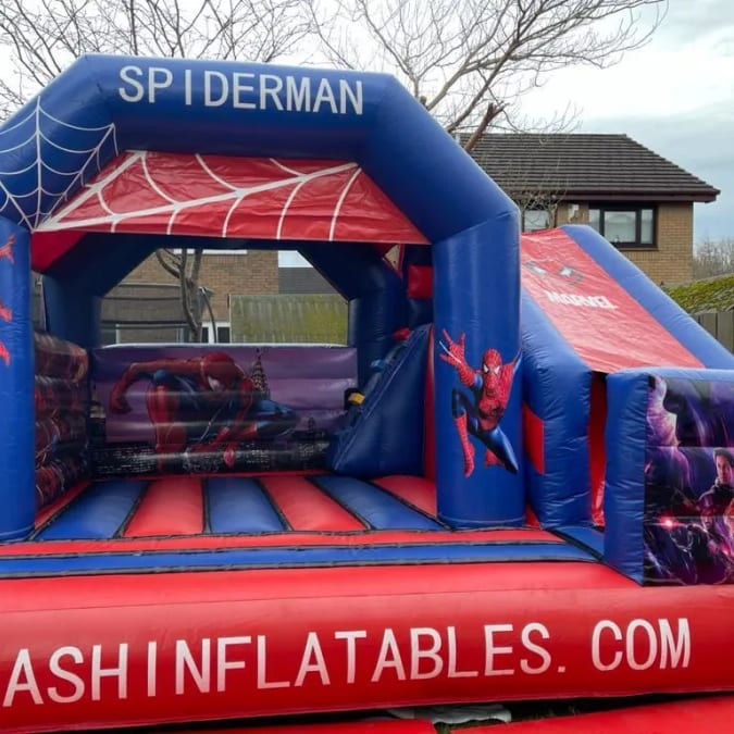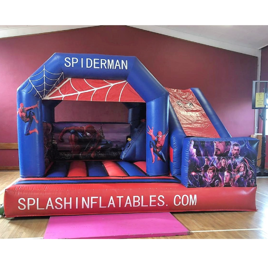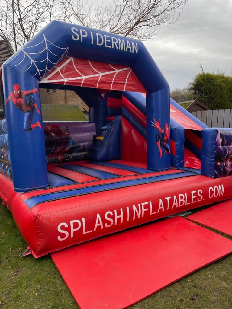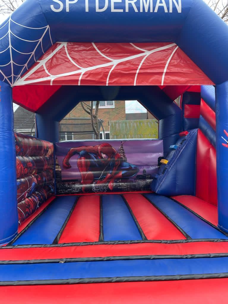 Wonderful Spiderman bouncy castle with slide for all the little superhero's out there!