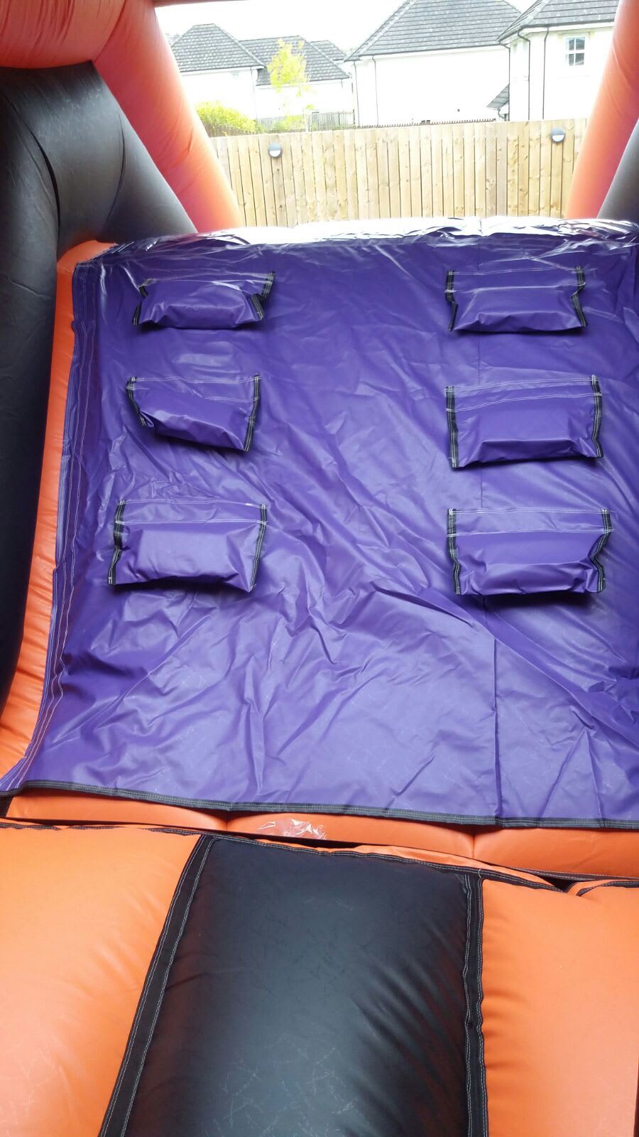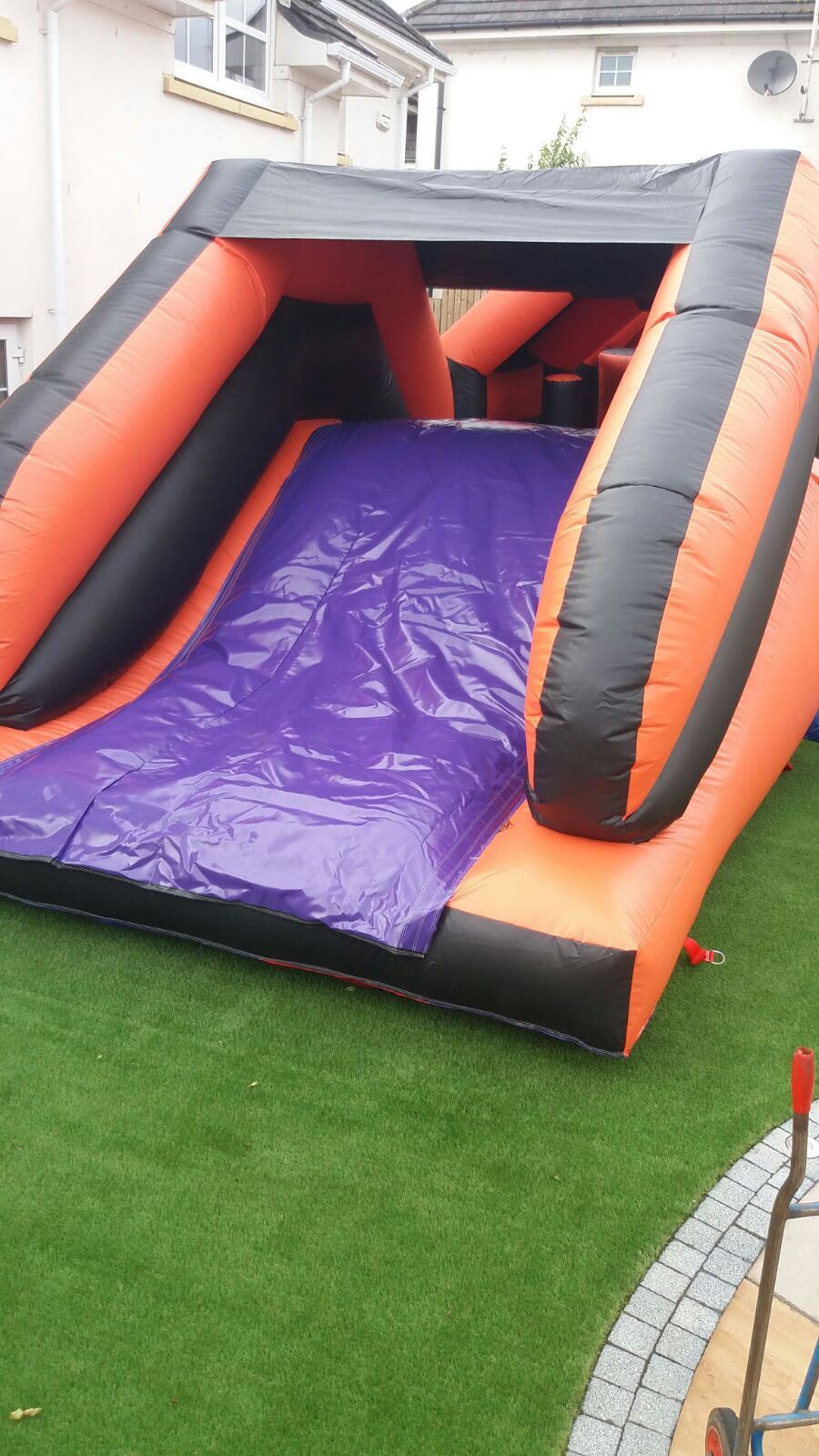 This inflatable is not suitable for hard surfaces outdoors or artificial muga football pitches.